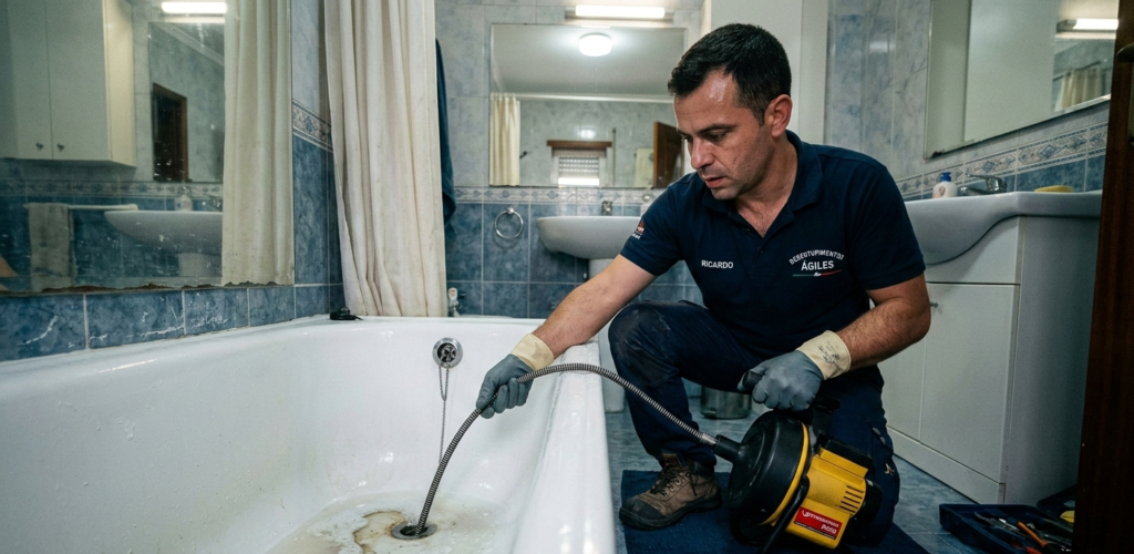 A nossa equipa especializada em desentupimentos de banheiras atua de forma rápida e eficaz, removendo cabelos, resíduos e bloqueios sem causar danos nas tubagens.
